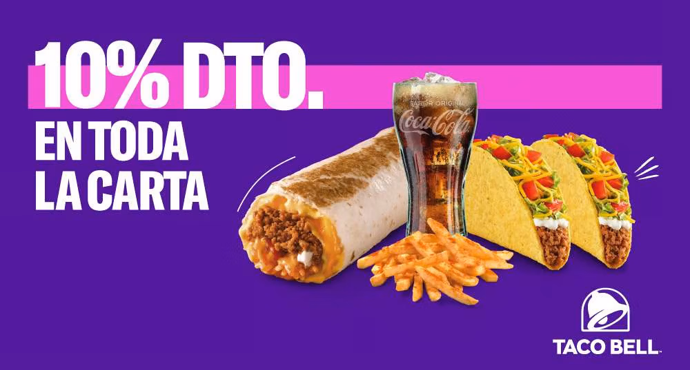 En Taco Bell podrás disfrutar de Tacos, Burritos, Quesadillas y de una gran cantidad de entrantes, menús y postres. Nuestra oferta es amplia y variada. ¡Ah! Y no te olvides de rellenar gratis las veces que quieras tu refresco.
