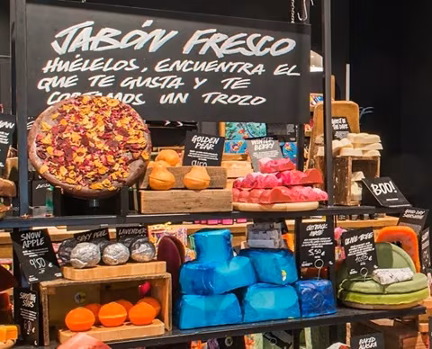 Lush lleva más de 20 años elaborando cosmética fresca y hecha a mano. Esta marca inglesa, con productos 100% vegetarianos y no testados en animales, apuesta por ingredientes naturales de calidad, muchas veces de comercio justo, e innovadoras formas de uso, buscando siempre soluciones creativas que tengan un impacto positivo sobre el planeta.